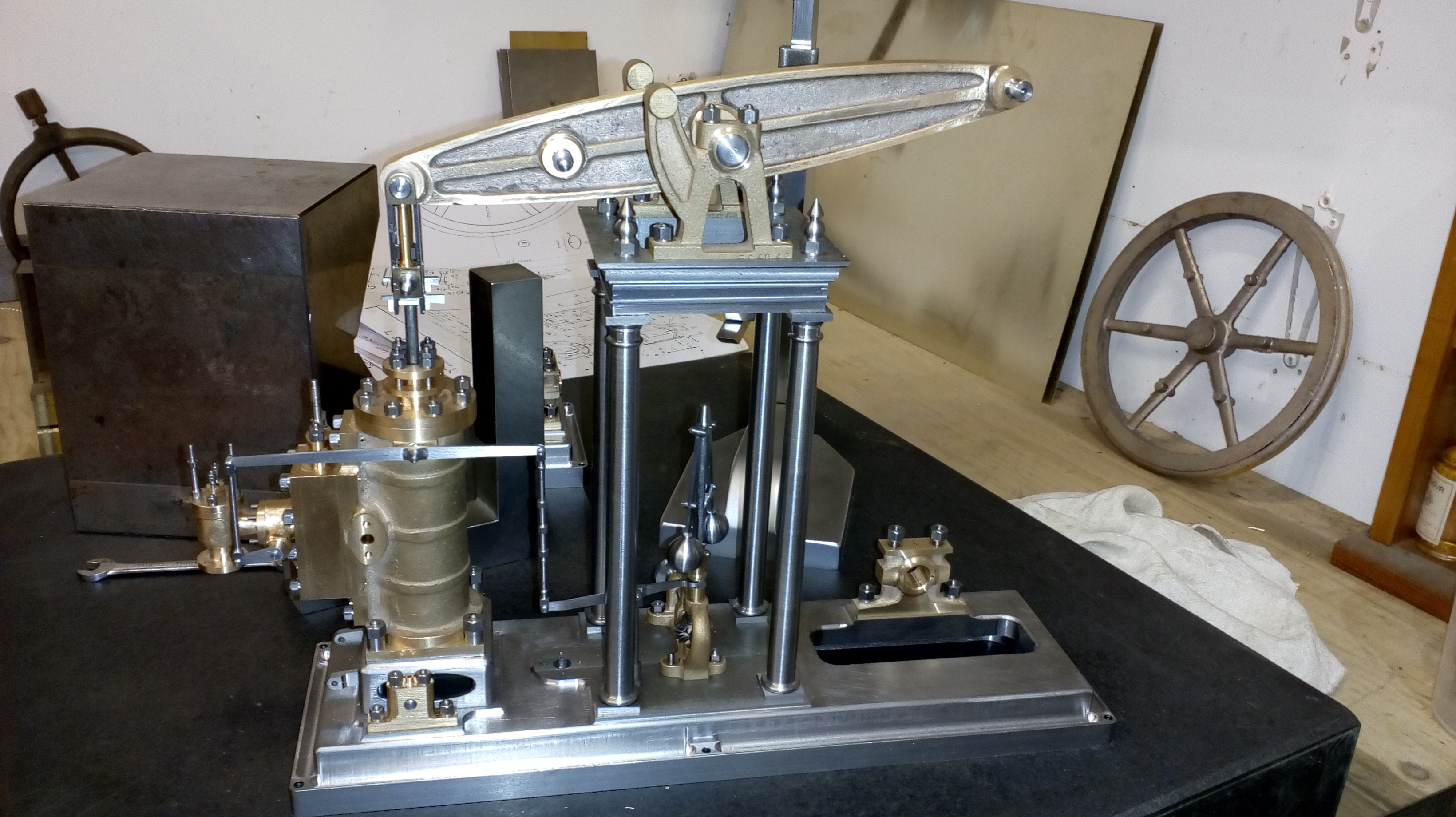 On the bench currently is a beam engine, a heavily reworked version of Tubal Cain's "Mary" design.