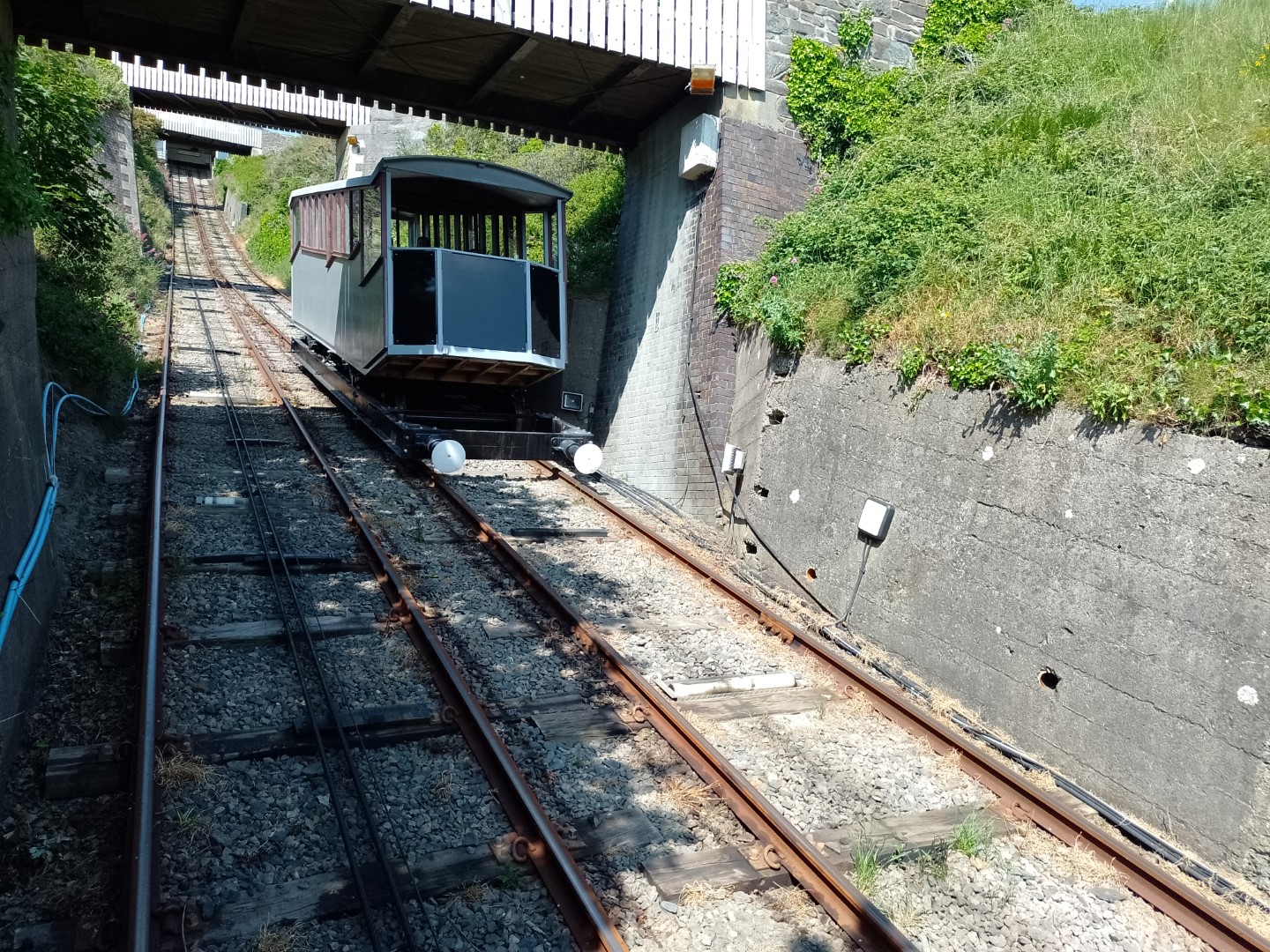 The railway has to pass under several bridges on its short ascent which carry a zig-zagging footpath up the hill for those hardy souls preferring to walk.