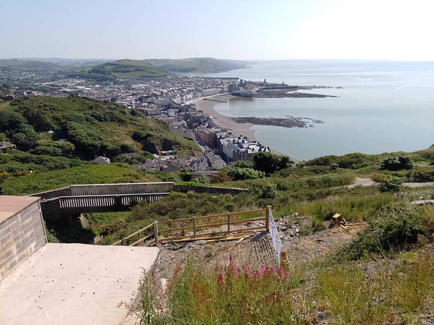With an hour spare before heading to our hotel, the splendid Plas Nanteos Mansion, we had a ride up Constitution Hill on the Aberystwyth Cliff Railway which opened in 1896, the longest electric funicular in Britain. An interesting experience - we loved the kink in the track allowing the two cars to pass halfway!