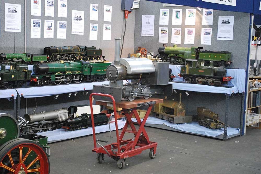 We got set up in short order - I'd taken twenty engines, which covered the benches, we then papered the walls at the back with details of some of the engines remaining at the workshop. Jayne is in charge of organizing our exhibitions and had done her usual thorough job - she must get extra marks when, two days before the show I bought a 6 inch scale traction engine that I announced had to go. With a little rearranging of things, it was safely conveyed there and back (and got a big picture of the stand in "Vintage Spirit" magazine, so it was well worth pushing the thing all around the hall).